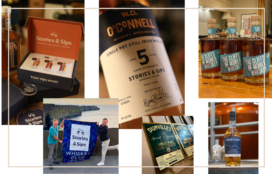 Stories & Sips Whiskey Club is a membership-based club founded and hosted by Barry Chandler where Irish whiskey fans can access educational materials, gain entry to monthly online tasting events, meet-the-makers events, in-person events and be eligible to purchase exclusive club bottlings, shares in cask programs and whiskey tasting with sampler kits.